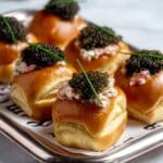 This fresh and indulgent Lobster Rolls recipe features tender lobster meat gently poached in clarified butter and tossed with a bright, creamy celery remoulade made with Japanese mayo, creme fraîche, and fresh herbs. Served on buttery toasted brioche slider buns and optionally topped with luxurious Kaluga Imperia caviar and chive sticks, these rolls make for a perfect elegant appetizer or special meal.