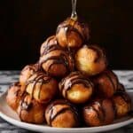 Loukoumades are delightful Greek honey doughnuts that are light, fluffy, and irresistibly sweet. These golden spheres of fried dough are traditionally drizzled with honey and chocolate, then sprinkled with crunchy pistachios for a perfect balance of textures and flavors.