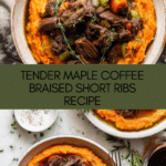 These Maple Coffee Braised Short Ribs feature tender, slow-cooked beef ribs infused with a rich blend of espresso coffee, bourbon, and pure maple syrup. Braised to perfection with aromatic vegetables and herbs, this comforting dish offers a perfect balance of savory, sweet, and smoky flavors ideal for a cozy fall meal.