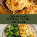 Keywords: Mayo Parmesan Chicken, baked chicken, creamy chicken recipe, easy chicken dinner, Parmesan chicken bake
