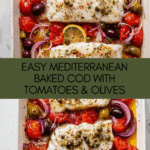 Mediterranean Baked Cod is a vibrant, flavorful dish that combines tender fish with roasted tomatoes, olives, and aromatic herbs. It’s a simple yet elegant meal perfect for a healthy weeknight dinner or entertaining guests.