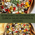 Keywords: Mediterranean quinoa salad, quinoa salad with vegetables, healthy quinoa recipe, lemon oregano dressing, feta cheese salad, cold quinoa salad, vegetarian salad