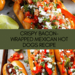 Keywords: Mexican hot dogs, bacon wrapped hot dogs, spicy hot dogs, pico de gallo hot dogs, cotija cheese hot dogs, street food, easy hot dog recipes