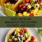 These Mexican Breakfast Tacos with chorizo and eggs are a vibrant and flavorful way to start your day. Packed with spicy chorizo, creamy scrambled eggs, and fresh pico de gallo, they deliver a perfect balance of heat and freshness wrapped in warm tortillas.