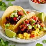 Keywords: Mexican breakfast tacos, chorizo and eggs, scrambled eggs, pico de gallo, breakfast recipe, easy Mexican breakfast
