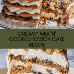 Milk ‘N’ Cookies Icebox Cake is a no-bake layered dessert featuring chocolate chip cookies and a creamy whipped filling made from heavy cream and cream cheese. This easy-to-assemble cake is chilled in the refrigerator until soft and luscious, making it a perfect make-ahead treat for gatherings or a sweet indulgence any time.
