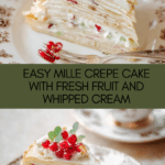 Keywords: Mille crepe, crepe cake, layered crepe dessert, French dessert, whipped cream crepe cake, fresh fruit dessert