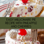 Millionaire Pie is a no-bake, creamy dessert featuring a graham cracker crust filled with a luscious mixture of crushed pineapple, sweetened condensed milk, maraschino cherries, and chopped pecans, all lightened with Cool Whip. This easy-to-make pie is perfectly chilled for a refreshing treat that offers a delightful balance of sweet and tangy flavors with a crunchy nutty texture.