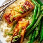 This Miso Black Cod recipe features tender, flaky black cod fillets marinated in a savory blend of white miso paste, coconut aminos, rice vinegar, maple syrup, and garlic. The fish is seared in a cast iron skillet to develop a crispy crust before finishing in the oven, resulting in a beautifully caramelized, flavorful dish perfect for an elegant dinner.