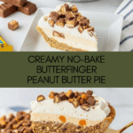 Keywords: No-Bake Pie, Butterfinger Pie, Peanut Butter Dessert, Easy Pie Recipe, No Bake Dessert, Graham Cracker Crust, Candy Bar Pie