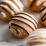 Delicious no bake cookie dough bites that combine the classic taste of cookie dough with a rich chocolate coating. These bite-sized treats are perfect for a quick snack or dessert, featuring safe-to-eat flour and a creamy, sweet, chocolate-studded dough, all coated in melted dipping chocolate and chilled to perfection.