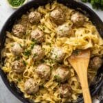 Keywords: Swedish meatballs, one pan meal, creamy meatballs, beef meatballs, egg noodles, quick dinner, comfort food
