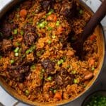 This One-Pot Caribbean Oxtail Pelau is a hearty and flavorful Caribbean classic that combines tender, marinated oxtail with pigeon peas, coconut milk, and seasoned rice. The dish is braised and baked to perfection in a Dutch oven, resulting in melt-in-your-mouth meat and richly infused grains, all in one comforting pot meal.