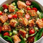 This one-pot salmon, spinach, and lentil salad is a wholesome, flavorful dish that comes together quickly and easily. Packed with protein and fresh vegetables, it’s perfect for a nutritious weeknight meal served warm with crusty bread.