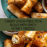 These Oven Fried Feta Rolls with Chili Honey combine crispy, golden phyllo pastry with a creamy, savory feta filling and a sweet-spicy honey drizzle. They make for a delightful appetizer or snack that’s both easy to prepare and full of flavor.