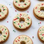 Keywords: confetti cookies, holiday cookies, sugar cookies, festive cookies, pan-banging technique, Christmas cookies, sprinkle cookies