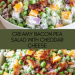 Keywords: pea salad,bacon pea salad,cheddar pea salad,creamy pea salad,cold pea salad,summer side dish,salad with bacon,pea salad recipe