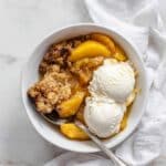- Serve: Top with your choice of ice cream or whipped cream for an indulgent finish, then enjoy your warm peach cobbler.