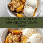 Keywords: peach cobbler, cake mix dessert, quick peach cobbler, easy peach dessert, baked peach cobbler