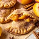 Keywords: Peach hand pies, fruit hand pies, baked hand pies, peach dessert, spiced peach filling, easy dessert, summer dessert