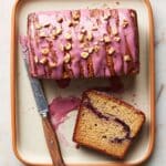 Keywords: peanut butter cake, pound cake, jelly cake, peanut butter and jelly, dessert loaf, jam glaze, raspberry cake, strawberry cake