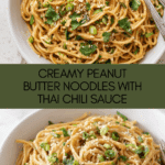 A quick and delicious Peanut Butter Noodles recipe featuring spaghetti tossed in a creamy, sweet, and savory peanut sauce, balanced with Thai chili sauce and soy sauce. This dish is perfect for a simple yet flavorful meal, garnished with fresh green onions, cilantro, and toasted sesame seeds.