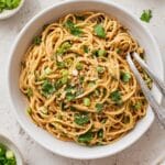 A quick and delicious Peanut Butter Noodles recipe featuring spaghetti tossed in a creamy, sweet, and savory peanut sauce, balanced with Thai chili sauce and soy sauce. This dish is perfect for a simple yet flavorful meal, garnished with fresh green onions, cilantro, and toasted sesame seeds.