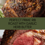 Keywords: Prime Rib, Standing Rib Roast, Beef Roast, Garlic Herb Butter, Red Wine Sauce, Oven Roasted Beef