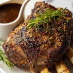 Keywords: Prime Rib, Standing Rib Roast, Beef Roast, Garlic Herb Butter, Red Wine Sauce, Oven Roasted Beef