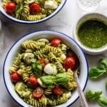 Keywords: Pesto pasta salad, basil pesto, pasta salad with bocconcini, Italian pasta salad, easy pesto pasta