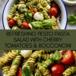 This bright and flavorful pesto pasta salad is a perfect dish for warm days or as a colorful side. Combining fresh basil pesto, cherry tomatoes, and creamy bocconcini, it’s easy to make and sure to impress. Whether for lunch or a picnic, this salad is both satisfying and refreshing.