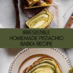 Keywords: pistachio babka, yeast bread, nutty babka, almond syrup, sweet bread, pistachio butter, twisted bread loaf