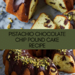 Keywords: Pistachio pound cake, chocolate chip cake, pistachio chocolate cake, Bundt cake, nutty dessert, chocolate glaze cake