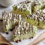 These Pistachio Rice Krispie Treats with Dark Chocolate are a delightful twist on the classic marshmallow treat, incorporating instant pistachio pudding mix for a unique flavor and a rich melted dark chocolate drizzle for an elegant finish. Perfectly chewy and sweet with a hint of nutty freshness, these treats offer a fun and easy dessert or snack option that can be enjoyed chilled or at room temperature.