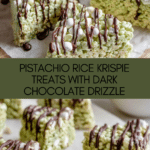 Keywords: Pistachio Rice Krispie Treats, Dark Chocolate, Pistachio Pudding, Marshmallow Dessert, No Bake Treats, Easy Dessert