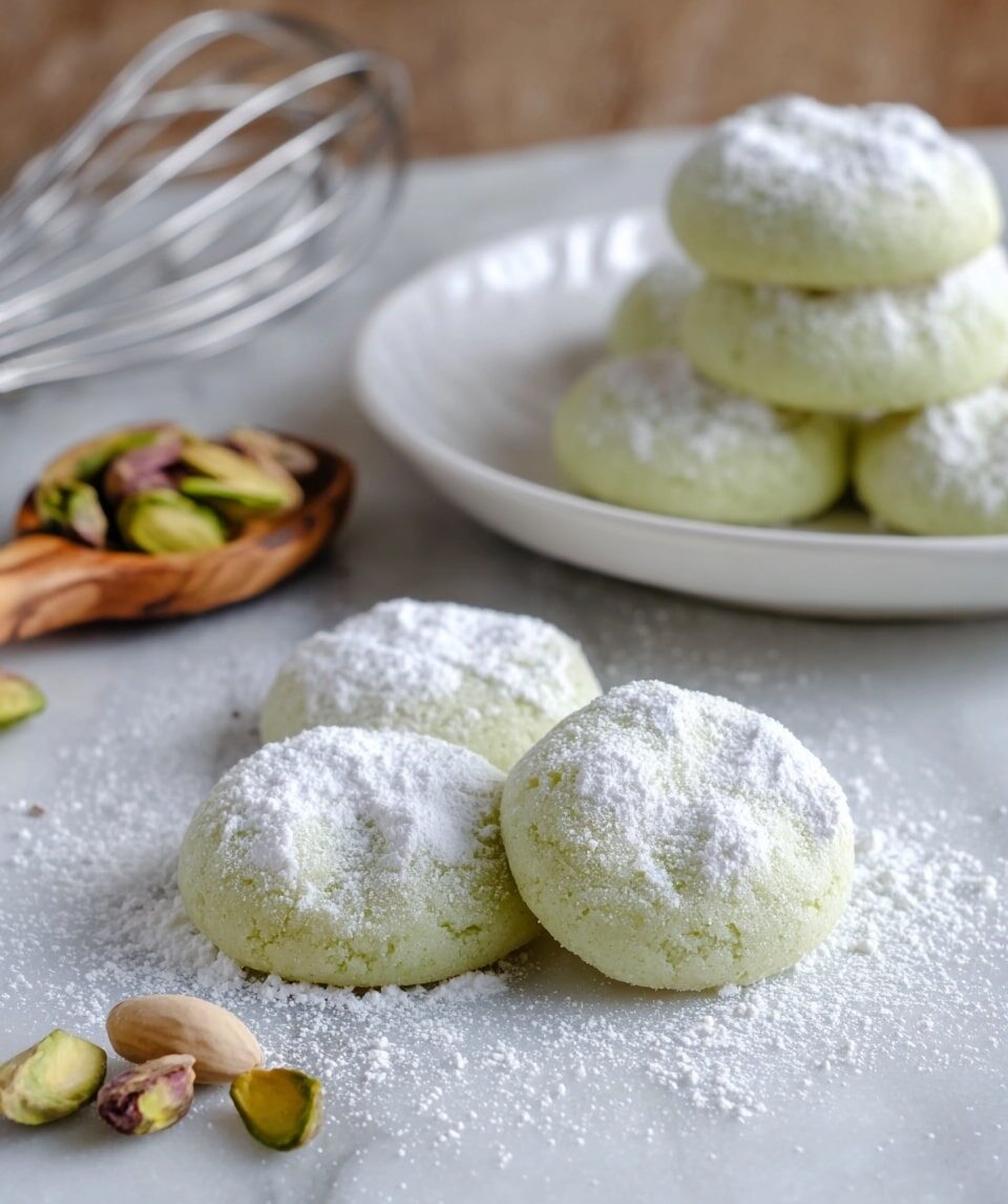 Pistachio Wedding Cookies are delicate, buttery treats with a subtle nutty flavor and a light dusting of powdered sugar. These soft, melt-in-your-mouth cookies are perfect for special occasions or a sweet everyday indulgence.