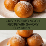Potato Mochi Delight combines fluffy mashed potatoes with glutinous rice flour to create chewy, golden-fried mochi patties. This simple and savory snack is enhanced with a drizzle of soy sauce, crunchy sesame seeds, and fresh green onions, making it a perfect appetizer or side dish with a delightful texture and balanced flavor.