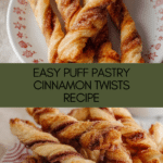 Delight in these easy-to-make Puff Pastry Cinnamon Twists, perfect for a sweet snack or breakfast treat. Flaky puff pastry is brushed with melted butter, coated in a fragrant cinnamon sugar and cardamom mixture, then twisted into elegant shapes and baked to golden perfection.