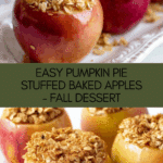 Keywords: pumpkin pie stuffed apples, baked apples, pumpkin dessert, fall dessert, vegetarian dessert, healthy dessert