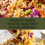 Keywords: Ramen noodle salad, crunchy salad, Asian salad, toasted ramen, peanut salad, sesame seed salad, cabbage salad, make-ahead salad