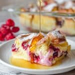 Keywords: French toast casserole, raspberry dessert, breakfast casserole, cream cheese breakfast, baked French toast, brunch recipe