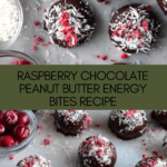 Keywords: energy bites, no-bake truffles, healthy snacks, vegan truffles, chocolate peanut butter bites, raspberry snacks, homemade energy balls