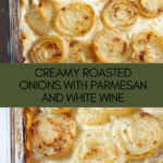 Keywords: roasted onions, creamed onions, side dish, baked onions, Parmesan cream sauce, caramelized onions