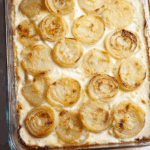 Keywords: roasted onions, creamed onions, side dish, baked onions, Parmesan cream sauce, caramelized onions