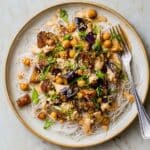 This Roasted Eggplant Noodles with Cashew Sauce recipe is a vibrant and comforting dish featuring tender roasted eggplant and chickpeas paired with delicate vermicelli rice noodles. Enhanced by a creamy, tangy cashew-based sauce with ponzu and toasted sesame, this dish boasts a perfect balance of flavors and textures, making it an ideal vegetarian and gluten-free meal.