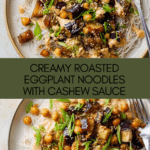 Keywords: roasted eggplant, cashew sauce, rice noodles, vegan noodles, gluten-free pasta, vegetarian dinner, healthy noodles, plant-based, easy roasted vegetables