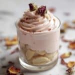 This Rosewater Vegan Tiramisu is a delightful twist on the classic Italian dessert, crafted entirely without dairy or eggs. Creamy vegan mascarpone and whipped vegan heavy cream are infused with fragrant rosewater for a floral note, layered with delicate vegan ladyfinger biscuits soaked in rosewater-scented oat milk. Chilled to perfection, this elegant dessert is finished with a dusting of powdered sugar and garnished with edible rose petals and dried rosebuds, making it perfect for special occasions or a romantic treat.