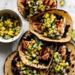 - For extra heat, add chopped jalapeño to the salsa or a dash of hot sauce to the tacos.