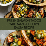 These vibrant Salmon Tacos with Mango Corn Salsa offer a fresh and flavorful twist on a classic favorite. Tender baked salmon seasoned with zesty taco spices is paired with a sweet and tangy mango corn salsa, creamy avocado or refried beans, and softened corn tortillas for a delicious and easy meal perfect for any night of the week.