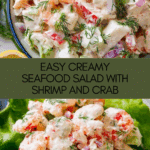 This seafood salad is a light and refreshing dish perfect for warm days or as a tasty appetizer. Combining tender shrimp, flaky imitation crab, and a tangy lemon-dill dressing, it’s easy to prepare and full of flavor.